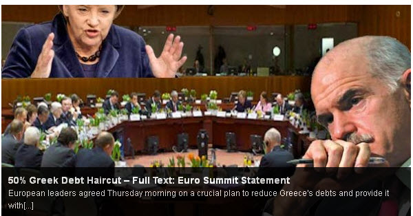 Η Τετάρτη της 26ης του Οκτώβρη δεν είναι απλά μια ημέρα, αλλά το επιστέγασμα ενός κύκλου καταστροφής. Το κούρεμα θα φτάσει στο 60% του χρέους, αλλά οι πραγματικές συνέπειες πέρα από ψυχρά λογιστικά, για άλλη μια φορά θα φανούν στον ελληνικό λαό. Άλλη μια φορά η κυβέρνηση της καταστροφής υπακούει τα κέντρα της Ευρώπης ως απλός παρατηρητής. Αυτό που ανησυχεί περισσότερο και από την ίδια την όπως-θες-ονόμασέ-την χρεοκοπία που πλέον μας χαμογελά σαρδόνια, είναι οι πρακτικές της Γερμανίας. Μια Γερμανία που προσπαθεί να δικαιώσει όσους κάνουν λόγο για Δ’ Ράιχ.