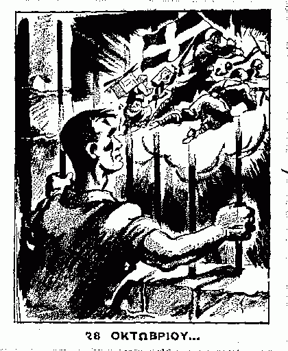 H 28 του Οχτώβρη είναι μια μεγάλη μέρα για τον ελληνικό λαό – και μέρα ντροπής για τους προδότες του. Κι όμως ετούτοι γιορτάζουνε το “αλβανικό έπος”. Και πάλι χωρίς το λαό. Και πάλι με φράχτη γύρω τους τα όπλα – για να τους φυλάνε όταν πηγαίνουν στην τελετή – να φυλάνε από το λαό τους εχθρούς του λαού.