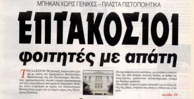 Μια ομάδα έντιμων εισαγγελέων τότε, αναγκάστηκε να κάνει έρευνα στο πανεπιστήμιο και να κατασχέσει τους φακέλους. Δύο ανακριτές, επί δύο χρόνια ερεύνησαν αυτή την υπόθεση, σχηματίζοντας δικογραφία που δεν χωρούσε σε ένα δωμάτιο. Ασκήθηκαν, διώξεις σε 400 άτομα. Οι περισσότεροι θα έμπαιναν φυλακή αφού οι κατηγορίες ήταν στοιχειοθετημένες. Και τότε εσείς νομοθετήσατε την αλλαγή του Ποινικού Κώδικα στα συγκεκριμένα άρθρα, που τύχαινε μάλλον να αφορούν τις δικές τους κατηγορίες. Τα αδικήματα ήταν πια πλημμελήματα και είχαν παραγραφεί. Οι φάκελοι έκλεισαν και δεκάδες επώνυμοι απατεώνες, ελεύθεροι πια, συνέχιζαν να φωτογραφίζονται στα περιοδικά ως έντιμοι και ανησυχούντες για την πόλη και βέβαια να καθορίζουν με τη δύναμή τους τα πολιτικά πράγματα. Αρκετοί από τους φοιτητές που πήραν μεταγραφές με τις ψευδείς βεβαιώσεις, όχι μόνο δεν τιμωρήθηκαν, αλλά σήμερα κάνουν πανεπιστημιακή καριέρα.