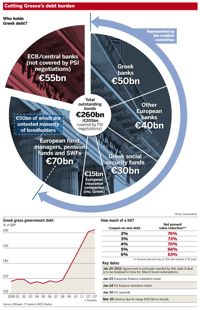 Fraught discussions on Wednesday – led on the creditor side by veteran technocrats Jean Lemierre, special adviser to the chairman of BNP Paribas, and Charles Dallara, managing director of the Institute for International Finance – have hit on a formula with Greek officials that an untested minority of bondholders could yet reject.