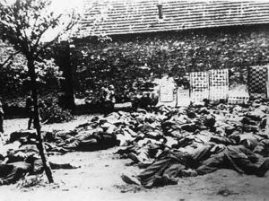 Κείνο το θανατερό βράδυ του Ιούνη, στα ματωμένα χωμάτινα σοκάκια του χωριού, βρήκε τα πτώματα ξεκοιλιασμένα, έρημα, μοναχικά. Μόνο το αεράκι τους χάιδευε τα μαλλιά. Δίπλα τους λίγα σκυλιά που γλύτωσαν τις σφαίρες, σαν ακοίμητοι φρουροί αλυχτούσαν πονεμένα, ενώ ο ουρανός από το απόγευμα γέμισε με ένα σύννεφο από κοράκια που μύρισαν τσιμπούσι….