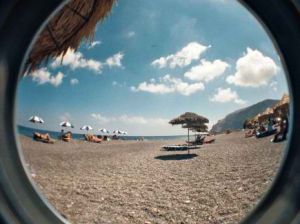 Οι ξαπλώστρες σπάνε σαν οδοντογλυφίδες και οι ομπρέλες κόβονται σαν λουλούδια. Οι τύποι που πουλάνε ντόνατς και καρπούζια εξαφανίζονται μέσα στην άμμο. Και μετά ακούγεται ο ήχος από γυαλικά που σπάνε γιατί τα παλικάρια γκρεμίζουν εστιατόρια και μπαρ. Λιωμένο παγωτό πλημμυρίζει τους δρόμους και πάνω του επιπλέουν κρεμμύδια, σουβλάκια, πίτες και γύρος μαζί με την περιστρεφόμενη βάση του. Ανυποψίαστοι ένοικοι δωματίων πετιούνται ημίγυμνοι στον δρόμο αφού το τουριστικό κατάλυμα καταρρέει και μαζί του πάει στο χώρα η παρακείμενη επιχείρηση με τα μηχανάκια. Το internet cafe χάνει κάθε επαφή με το δίκτυο και ένα μπλουζάκι από τα ερείπια των τουριστικών ειδών καρφώνεται πάνω στην κεραία ενός ταξί που έγινε σαν τον Τουίτι αφού τον έχει πατήσει νταλίκα.