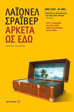 Αμερικανίδα εγκατεστημένη στο Λονδίνο και με δημοσιογραφική θητεία, η Λάιονελ Σράιβερ δίνει μια ανατριχιαστική εικόνα του συστήματος υγείας των ΗΠΑ προ Obamacare, αναδεικνύει τη δύναμη των ασφαλιστικών εταιρειών και αφουγκράζεται μια κοινωνία διχασμένη ανάμεσα σε θύματα και θύτες, σε “Κορόιδα” και “Κοράκια”, ανάλογα με το αν φορολογούνται ή φοροδιαφεύγουν, αν “καρπώνονται” επιδόματα, αν ζουν με ξένες πλάτες. Μιλά για τα χαπακωμένα σχολιαρόπαιδα , για τις ρωγμές στην εκπαίδευση, για μια καλωδιωμένη γενιά που ίσως να μην είναι και τόσο αυτιστική εν τέλει… Μιλά βέβαια για το χρήμα: η οικονομική αιμορραγία του Σεπ καταγράφεται με λεπτομέρειες. Το ίδιο όμως και η αντοχή του γάμου του, η έγνοια για τον υπέργηρο πατέρα του, η επαγγελματική του συνέπεια και η δημιουργική του τρέλα. Πίσω από τον τίτλο-σύνθημα “Αρκετά ως εδώ”, κρύβεται ένα μπριόζικο “κατηγορώ” στον δυτικό εμπορευματοποιημένο κόσμο κι η ιστορία ενός εντάξει τύπου που κράτησε το όνειρό του ζωντανό. Στα must του φθινοπώρου!