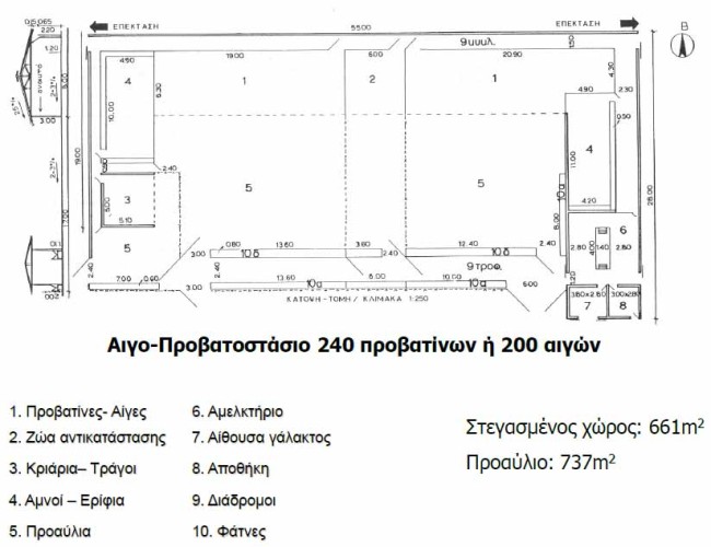 Και συγκεκριμένα 661τ.μ. στάβλου : 240 προβατίνες = 2. 75 τμ ανά προβατίνα ή 661τ.μ.: 200  = 3.31 ανά γίδι  (βλέπε πίνακα 2).
