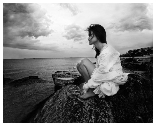 Όλα αυτά γύριζαν στο κεφάλι της όσο τα πόδια της πήγαιναν σαν από μόνα τους κατά τα βράχια κι εκείνος, πλάι της, ακολουθούσε… κοιτάζοντάς τη μ’ εκείνο το σκοτεινό… σα λιωμένο μολύβι, βλέμμα…