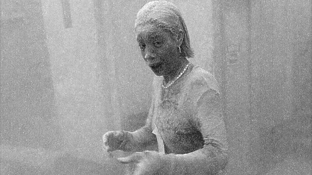 Την ημέρα των επιθέσεων στο World Trade Center της Νέας Υόρκης φωτογράφισα μια γυναίκα καλυμμένη από σκόνη, μετά την πτώση ενός από τους Πύργους. Αργότερα θα γινόταν μια από τις εμβληματικές φωτογραφίες της 11η Σεπτεμβρίου. Ήταν μόνο ένα στιγμιότυπο που τράβηξα από αυτή καθώς πολλοί άνθρωποι έψαχναν καταφύγιο στο λόμπι ενός κτιρίου. Προσπαθούσαν να προστατευτούν από το γιγάντιο σύννεφο σκόνης και συντριμμιών που είχε καλύψει την περιοχή μετά την πτώση του πρώτου Πύργου. Φορούσε ένα ταγέρ εργασίας και η σκόνη είχε εξαφανίσει το χρώμα των ρούχων και των παπουτσιών. Το φως από το λόμπι αντανακλούσε πάνω στο κολιέ της. Τα χέρια της ήταν απλωμένα σαν να μου έκανε κάποια χειρονομία.